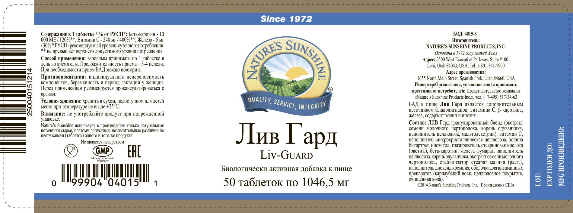 Лив Гард  НСП — это мощное средство для восстановления печени и поддержки ее работы. Лив Гард содержит: бета-каротин, витамин С, железо, холин и инозитол. В состав комплекса также входят экстракты расторопши и одуванчика.