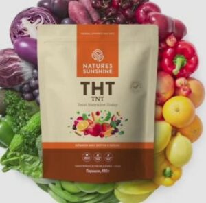 ТNТ (Total Nutrition Today – Полноценное питание сегодня) – напиток, обогащенный необходимыми для организма 12 витаминами, 12 биоэлементами, содержит в-каротин и лецитин, а также смесь пищевых растительных волокон: гуммиарабик, рисовая мука, целлюлоза, каррагенан, клетчатка сои, овса, свеклы, гороха, яблока, овсяные и кукурузные отруби, гуаровая камедь в количестве 6,5 г (в том числе 4,5 г растворимых и 2 г – нерастворимых). ТНТ также содержит углеводы в виде фруктозы, и мальтодекстрина. Калорийность – около 70 ккал на порцию 19 г.
